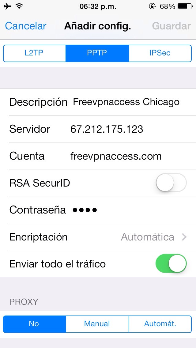 Si desean usar otra red que no sea la que estoy usando yo (Chicago) deben colocar en servidor el número que coloca la página, al igual que la contraseña y la cuenta.