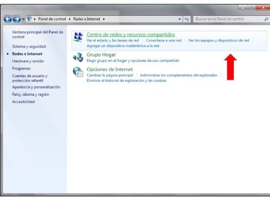 Paso 3: Seleccionar la opción «Centro de redes y recursos compartidos»