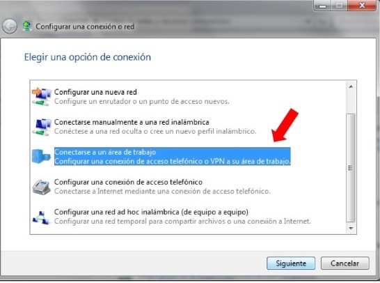 Paso 5: Seleccionar la opción «Conectarse a un área de trabajo»