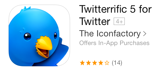 Hoy a saltado la noticia de que uno de los clientes mas importantes de twitter, Twitterrific 5, se ha actualizado y con esta actualización no solo nos traen corrección de algunos errores, mejora en la velocidad y un nuevo easter egg, sino que en The Iconfactory, han decidido pasar su popular aplicación a un modelo ya conocido y muy popular en la App Store, Fremium.