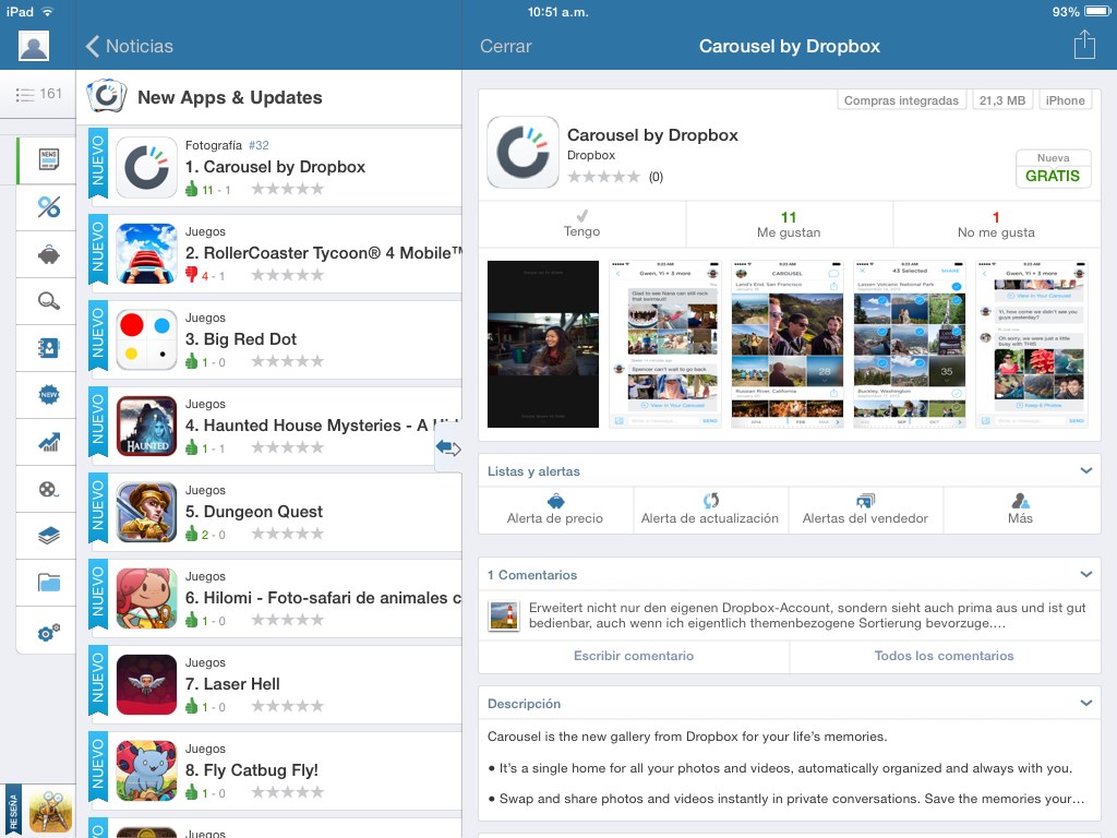 - Alerta de precio: Para saber cuando la aplicación baja o sube de precio.