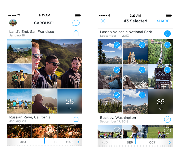 Carousel nos permitirá poseer nuestra propia galería de imágenes en linea para que podamos acceder a ellas desde cualquier lugar del planeta. También han simplificado y mejorado el hecho de compartir nuestras fotos, ya que nos permite compartir todas aquellas imágenes con otros usuarios de forma privada e incluso podemos crear chats de conversación privados con otras personas y contactos.