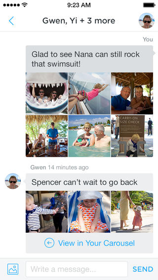 - Carousel by dropbox (iPhone): La nueva aplicación de dropbox esta dando mucho de que hablar, nos permite organizar nuestras fotos de manera rápida y sencilla, aprovechando el espacio que tengamos en dropbox, ademas de dar la opción de permitir compartir fotos y vídeos en chats privados, muy interesante opción si eres de esas personas que guarda los recuerdos en la nube. Descarga: Carousel by Dropbox
