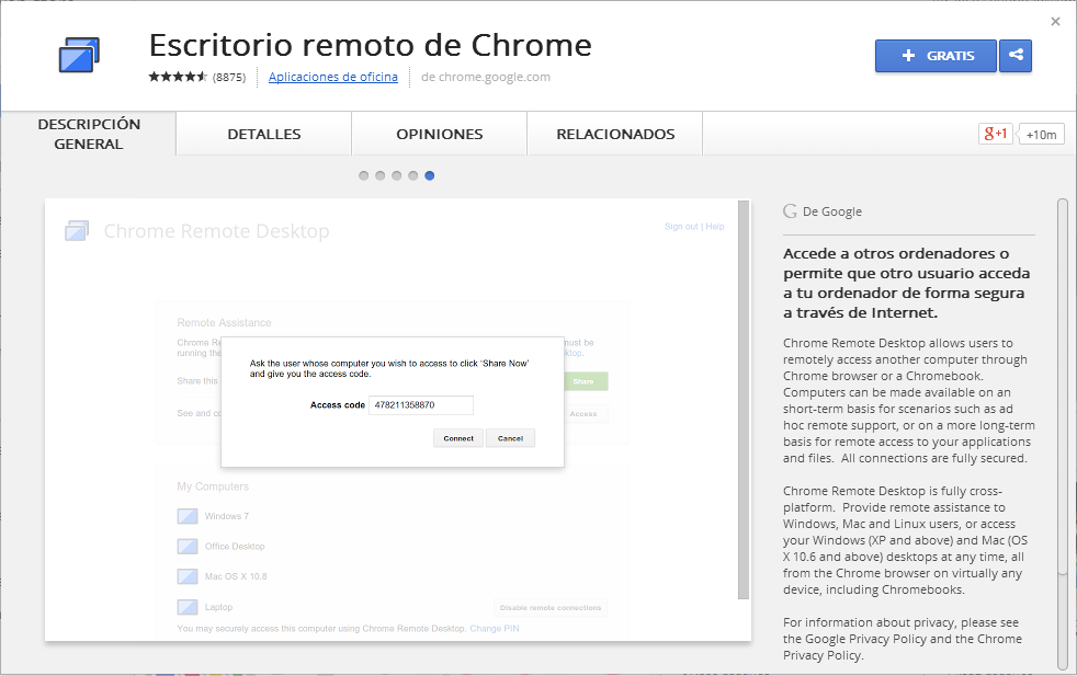Así como existe por parte de Microsoft está Microsoft Remote Desktop, Google no ha querido quedarse atrás y se lanza a la competición. Seguramente más de uno esté relacionado con éstos conceptos pero igualmente lo explicaremos muy brevemente.