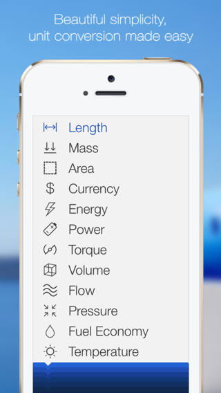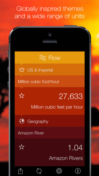 Nos ofrece un rango de unidades desde el Sistema Métrico (SI) hasta las unidades que no son parte de él, ajuste para hasta 15 cifras significativas, con la posibilidad de compartir los resultados por Twitter, Facebook, E-Mail o mensajes. Posee una interfaz totalmente adaptada a iOS 7 y con 16 temas para elegir el que mas se adapta a nosotros esta aplicación es sin duda un Must-Have el cualquier iPhone o iPad.