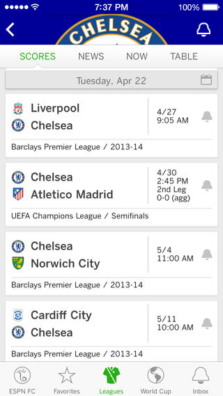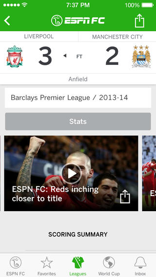 - ESPN FC (iPhone): La nueva aplicación de la cadena líder en deportes, la cual nos permite seguir los pasos de nuestros equipos favoritos de fútbol, ademas que mediante ella podremos tener una cobertura especial de la copa del mundo Brasil 2014. Descarga: ESPN FC.