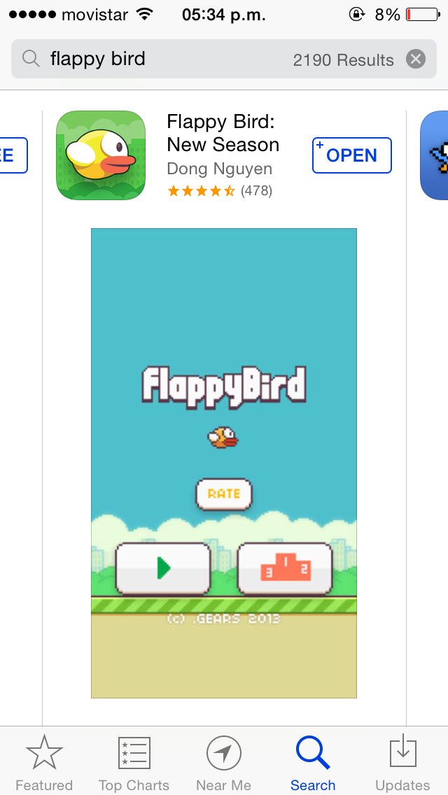 Pues al parecer el adictivo juego del programador vietnamita ha vuelto al App Store, pero esta vez cambia de nombre para convertirse en «Flappy Bird: New Season» y esta subiendo como la espuma en el App Store.