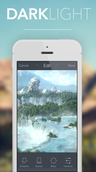 - DarkLight (Universal): Aplicación de edición fotográfica la cual ofrece opciones avanzadas de edición como: Rotación de imágenes, marcos, texto, stickers, entre otras.