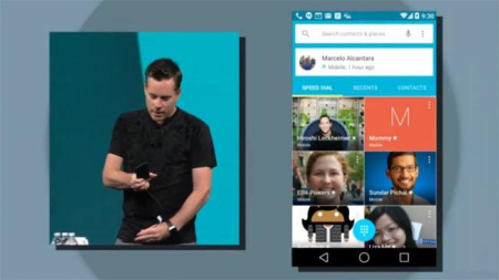 Vemos una interfaz mucho más plana y el rediseño de apps como GMail o el dialer, este rediseño le han llamada Material Design.