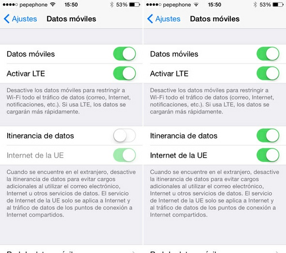 - Internet de la UE: Ahora los usuarios de europeos tienen la opción de utilizar la itinerancia de datos solo en la Unión Europea.