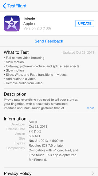 - TestFlight (Universal): Aplicación de Apple (que solo podremos descargar si tenemos iOS 8) para instalar y probar aplicaciones que se encuentran en estado Beta, ademas, también podemos comunicar al desarrollar bugs que encontremos en dichas aplicaciones.