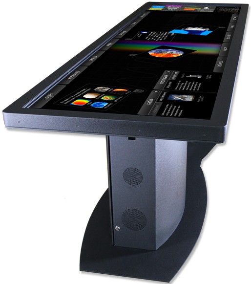 Esta mesa futurista cuenta con una pantalla de 100 pulgadas que incluye dos paneles LED LCD de 55 pulgadas que permite hasta 40 puntos de presión simultáneos y hay opción de elegirla con resolución FullHD o UltraHD para los mas atrevidos.