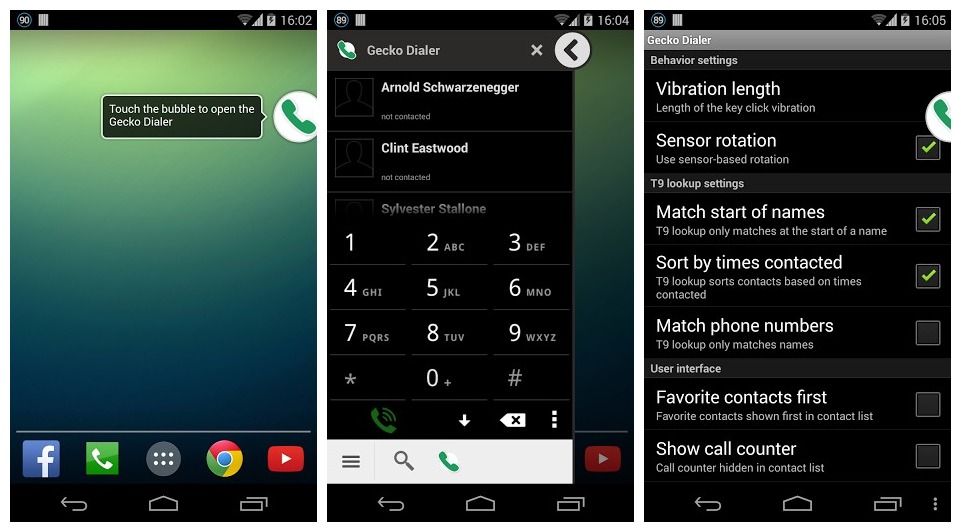 Tiene una característica muy parecida a Facebook Messenger, ya que podemos colocar el acceso directo flotante en cualquier lugar de la pantalla que deseemos. También posee otra característica que es la del reconocimiento de números telefónicos, así que cuando queramos escribir un numero esta lo identificara y antes de que terminemos de marcarlo nos dará el nombre o las opciones mas cercanas al numero que intentamos marcar.