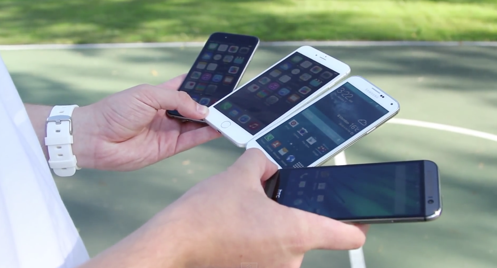 4 de los mejores smartphones del año se enfrentan al test de caídas, entre ellos se encuentra en una esquina el iPhone 6 y el iPhone 6 Plus, y en la otra esquina el Samsung Galaxy S5 junto al HTC One M8, ¿cual sobrevivirá la prueba?