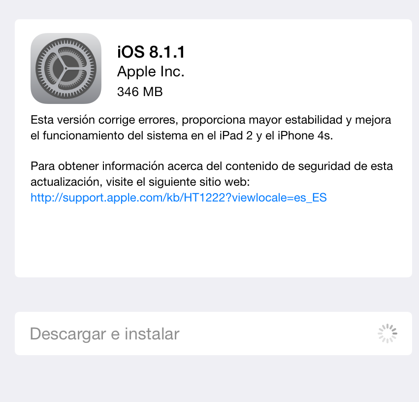Apple recién ha publicado la actualización gratuita de su sistema operativo móvil iOS a la versión 8.1.1 que entre otras cosas,incluye mejoras de estabilidad y fluidez para todos sus equipos, en especial el iPad 2 y el iPhone 4S, luego de diversas quejas de usuarios de estos modelos anteriores cuyo bajo rendimiento tras la actualización a iOS 8, quedaba en evidencia frente a los equipos más nuevos. La misma actualización de iOS se encuentra disponible en los Apple TV.