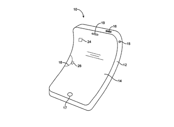 Adicionalmente, la patente describe varios aspectos del equipo como el tipo de pantalla, las tarjetas de circuitos, sensores, motores, altavoces, baterías y materiales. Por ejemplo, la parte externa del smartphone flexible de Apple estaría compuesta de plástico, cristal delgado, compuestos de fibra y algunos otros elementos resistentes a la flexión constante.