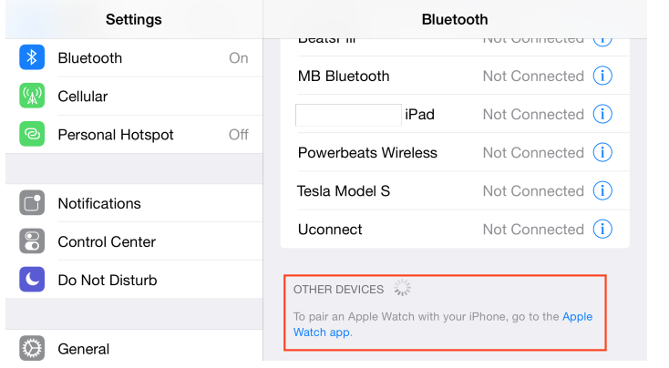 Por otra parte, en los ajustes de Bluetooth de iOS 8.2 hay una clara instrucción para vincular el iPhone con un Apple Watch, remitiéndonos a la aplicación en cuestión que estaría disponible para equipos iguales o superiores al iPhone 5.