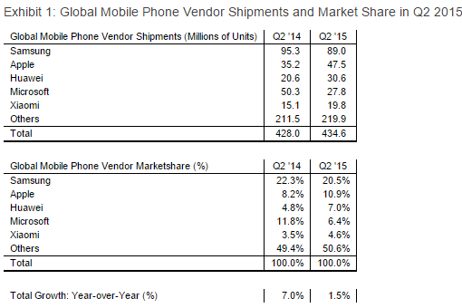 Preocupante quizás son las cifras de Microsoft quienes han perdido casi un 50% de su cuota de un trimestre a otro; mas tomando en cuenta toda la inversión que hicieron, recordemos que compraron la compañía Finlandesa Nokia por 7200 millones de dolares aunque como vemos parece no significar una razón para escoger su sistema operativo, eso si la llegada de Windows 10 a todos sus dispositivos es mas que probable que anime de nuevo las ventas de una bestia que parece dormida pero que sabe moverse en el mercado.