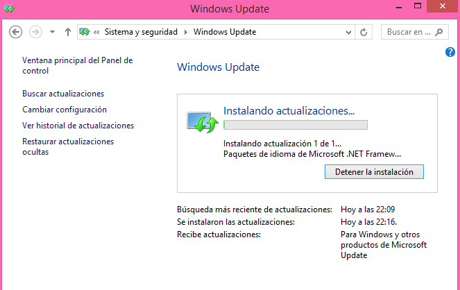 Para los usuarios de Windows 7 y Windows 8 el siguiente paso seria, ejecutar todas las actualizaciones que te ofrece Windows Update, si no veis que tengáis actualizaciones pendientes, darle a buscar actualizaciones y todo lo que encontréis instalarlo.