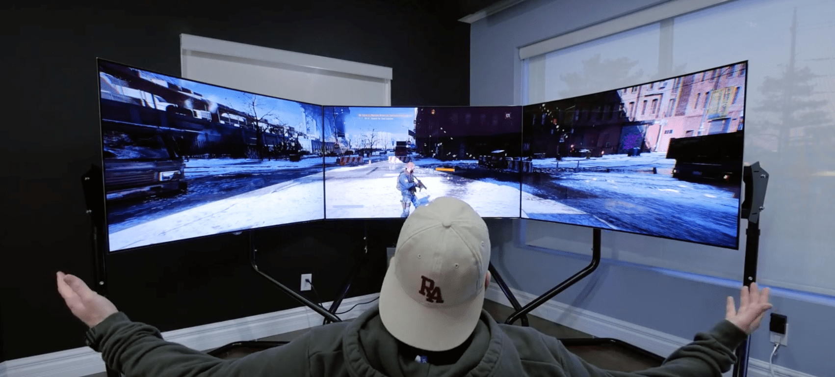El sueño de todo Gamer o amante de los videojuegos lo verás en este vídeo, donde el canal más popular del mundo con respecto a tecnología, UnboxTherapy construyó gracias a LG y GeForce el espacio/sala de juego más envidiable y asombroso que verás por mucho tiempo. Se trata de nada más y nada menos que 3 televisores 4K OLED de 65 pulgadas cada uno (con un módico precio de USD 5.000 c/u) unidos con una base para que las pantallas te absorban mientras juegas logrando que no salgas de esa silla más nunca.
