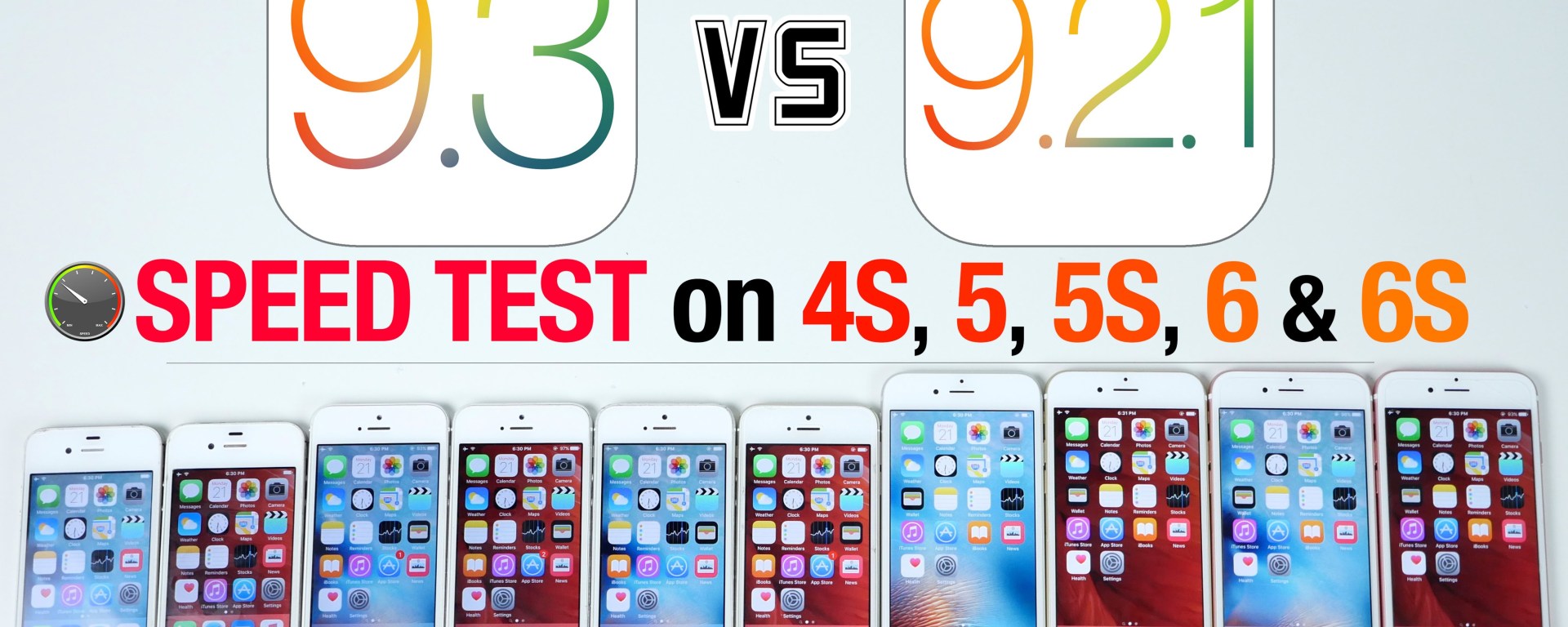 El canal de Youtube especializado en Apple «EverythingApplePro» realizó un vídeo comparativo entre las 2 últimas versiones del sistema operativo de Apple, iOS 9.3 vs iOS 9.2.1, probando cúal de estas 2 versiones era más rápida y fluida a la hora de encender el dispositivo, abrir aplicaciones entre otras acciones. El test se realizó en todos los iPhones compatibles con iOS 9: iPhone 4s, iPhone 5, iPhone 5s, iPhone 6, iPhone 6s.