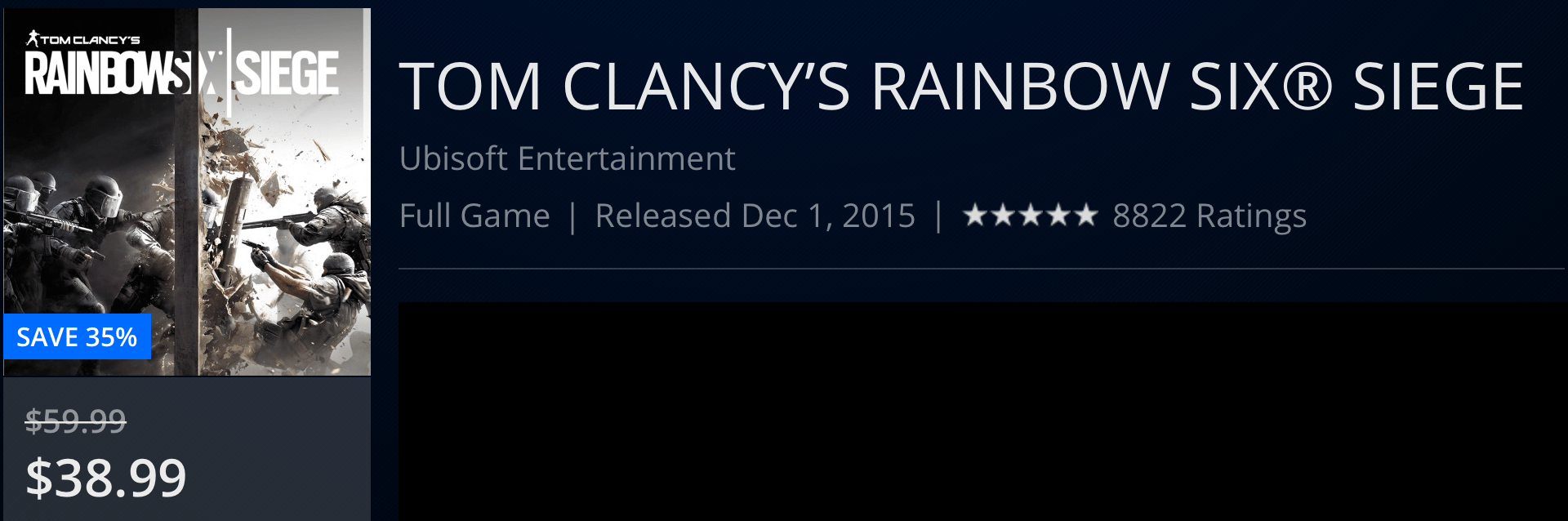 El fantástico juego de Ubisoft, Tom Clancy’s Rainbow Six Siege se encuentra en OFERTA por tiempo limitado para PlayStation 4. Este juego ha sido rebajado de 59,99$ a 38,99$ y estará disponible con este precio desde el 5 de Abril hasta el 12 del mismo mes.