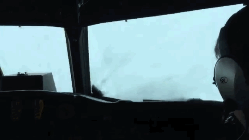 Estos aviones obviamente están diseñados para aguantar vientos de más de 200 kilómetros por hora, pero uno de los tripulantes publicó via Twitter unos vídeos para que el mundo viera como vivieron el huracán desde el ojo.