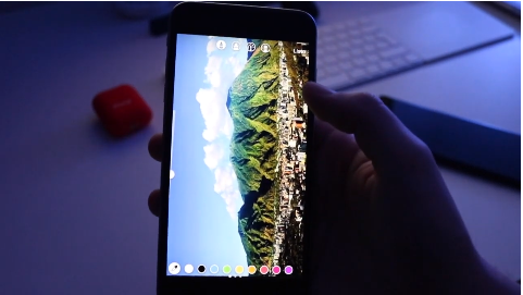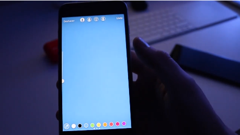 Selecciona la foto que quieres colocar de fondo, luego escoge un color que será tu nuevo fondo, y deja presionado la pantalla por unos segundos hasta que el color cubra toda la pantalla. Luego utiliza el borrador y pasa el dedo por la pantalla, verás como aparece mágicamente el fondo que seleccionaste previamente.