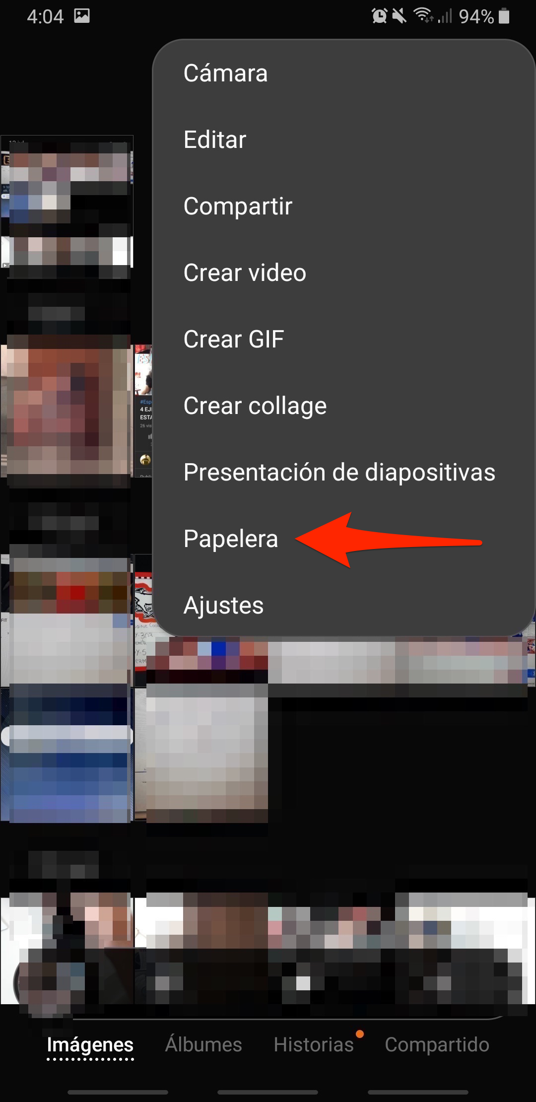 En mi caso al abrir la galería, donde aparecen 3 puntos en vertical aparece la función de papelera donde puedo ver todas las fotos que he borrado y que todavía no se han eliminado por completo. Solo tienes que dejar presionado la foto o fotos que quieras y darle al botón de restaurar.