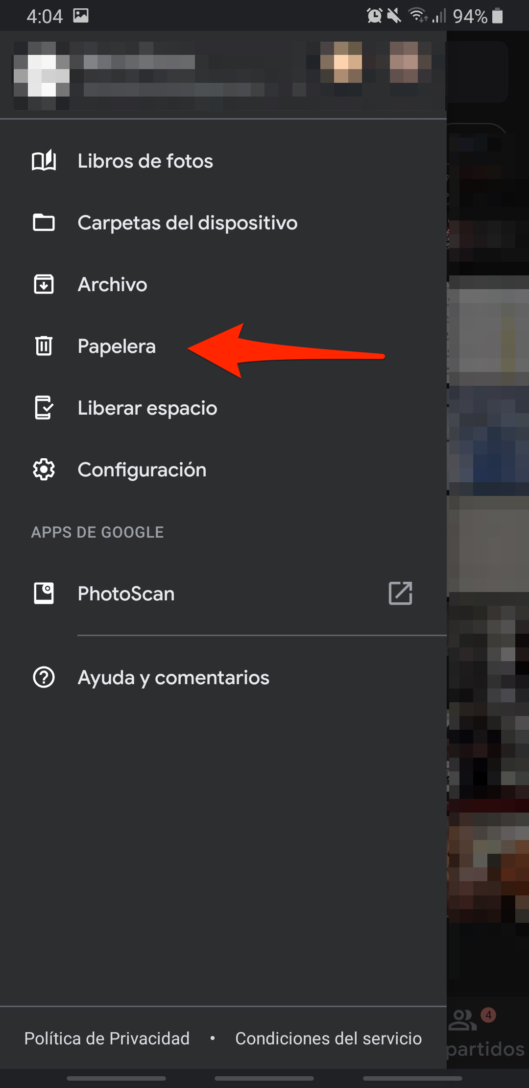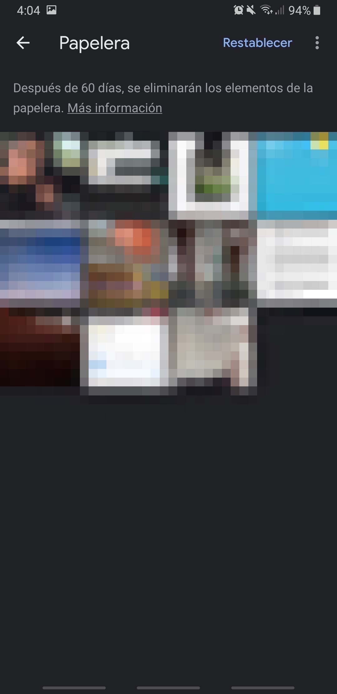 En cambio si usas google fotos, es exactamente igual, en este caso son 3 rayas horizontales donde aparece la opción de papelera, y realizamos los mismos pasos, seleccionamos las fotos y le damos a restablecer